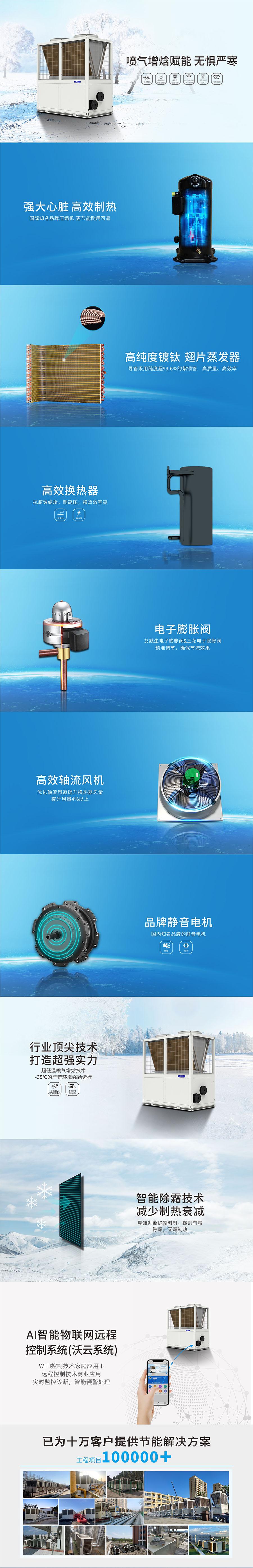 超低温:机组可在-30℃环温下高效采暖,最高出水温度可达60℃;