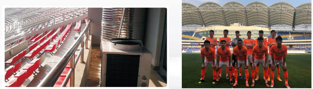 大型场馆:长期征战中甲、中乙的江西联盛足球俱乐部为运动健将们选择九州酷游商用循环式系列空气源热泵热水,可随时为球员提供恒温淋浴用水,出水量大,体感舒适,即开即停。满足比赛、训练过程集中淋浴的大量健康热水需求。