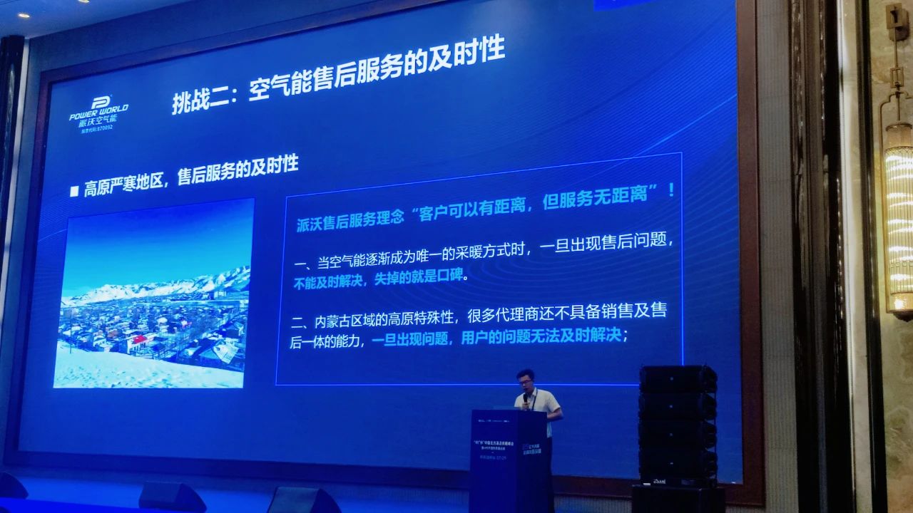 会上,九州酷游空气能北京内蒙区销售总监魏总作极寒区域综合解决方案主题报告,针对内蒙极寒环境中空气能所要面对的挑战和机遇,做出综合解决方案分析,结合了具体项目与应用情况,向与会者分享九州酷游的高效清洁供暖方案和售后有效性、及时性保障,为清洁供暖产业绿色发展注入动力,赢得了众多同行、品牌商、客户的认可与赞誉!