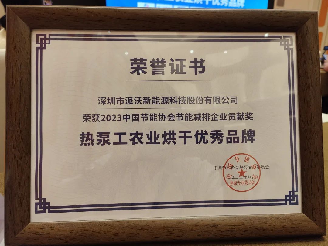 2023年8月,九州酷游荣获热泵工农业烘干优秀品牌