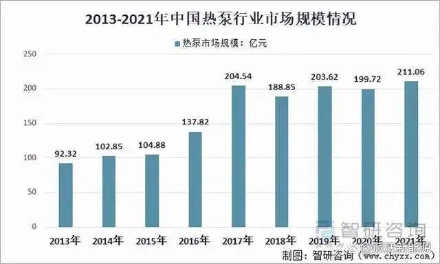 在国家政策支持力度的加大和生产企业增多的因素影响下,我国热泵行业取得了较快发展。相关数据显示,2021年我国热泵行业市场规模达211.06亿元,同比增长5.68%。未来根据我国“双碳”政策的加速实施,中国热泵市场规模在2022年有望持续上升。