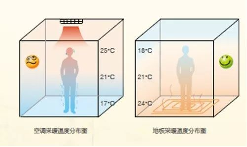 在采暖,空调是头顶出风,再加上热空气会上升,因此很容易导致温度分布不均,形成上热下冷,头燥足凉的情况。特别是一些老年人,容易患上寒脚病,关节炎。