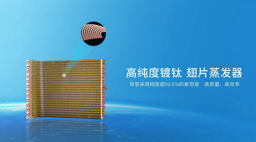 在空气能热水器中,蒸发器主要是翅片式的,属于干式蒸发器。蒸发器使用的翅片形式有平片、波纹、百叶窗和桥片,不同的形式换热能力也不一样,换热能力越强风阻越大。