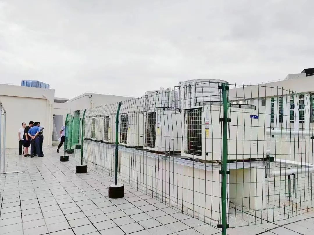 在充分了解学校概况以及诉求之后,九州酷游凭借此前积累了诸多项目落地经验,进行了精密的勘察和测量,综合考虑下,最终采用了18台12匹空气能热水机组,共三栋宿舍楼,每栋楼配置6台空气能热水机组,并配置了多个保温水箱,可提供120吨热水用量,保证充足的供水量及供水稳定。