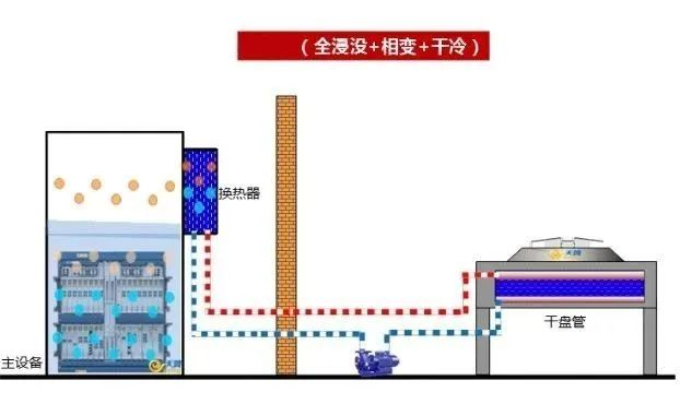 原理:跟人工降雨有异曲同工之妙,它在发热元件上方储液、开孔,通过动力设备释放大招,对发热元件全体喷淋,沸点低的液体通过吸热蒸发带走热量,没有被蒸发的液体则顺流回到外部冷却系统降温后再次循环。