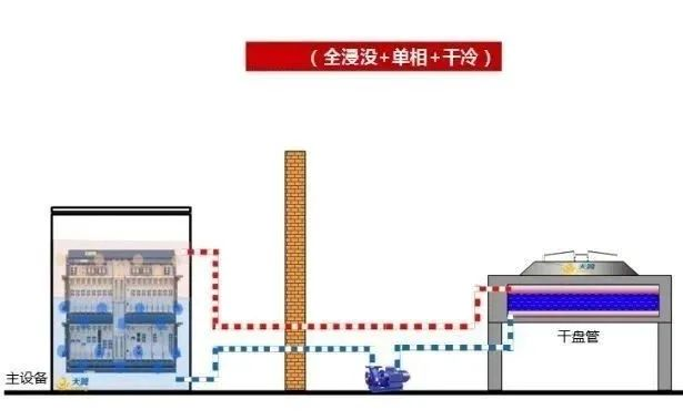 单相液冷冷却液在循环散热过程中始终维持液态,不发生相变,故要求冷却液的沸点较高,这样冷却液挥发流失控制相对简单,与设备的元器件兼容性比较好,但相比两相液冷,其效率较低。根据实际应用场景,可采用干冷器或冷却塔散热。