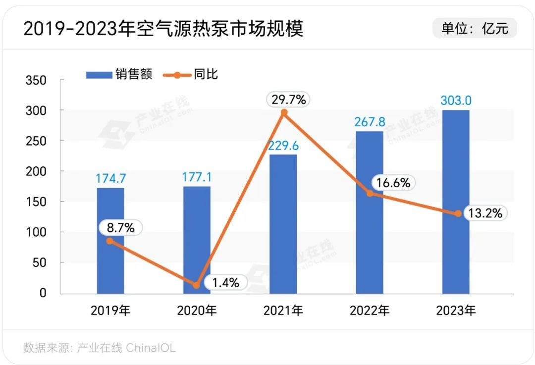 伴随着对这些问题的思考,从空气源热泵市场的发展概况可窥见一斑。据产业在线数据显示,2023年空气源热泵整体销售303亿元,同比增长13.2%。当前,在发展新质生产力以及供热清洁能源转换等多重因素助推之下,空气源热泵迎来新一轮发展契机,九州酷游致力于清洁能源利用领域脱颖而出。
