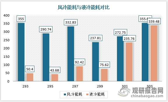 此外,在能耗方面,根据中科院相关研究资料可知,与风冷系统相比,液冷系统的热管理效率更高,冷却效果更佳,在进口温度范围为293-303K条件下,假设温度相同,液冷的功耗是风冷的六分之一,同时气体相较于液体比热容低。